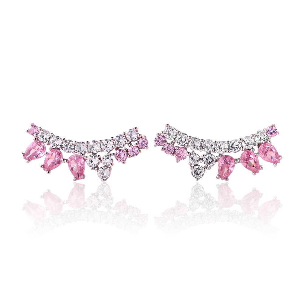 Freya 925 sterling silver plated, stud earring decorated with white and pink zirconia stones.