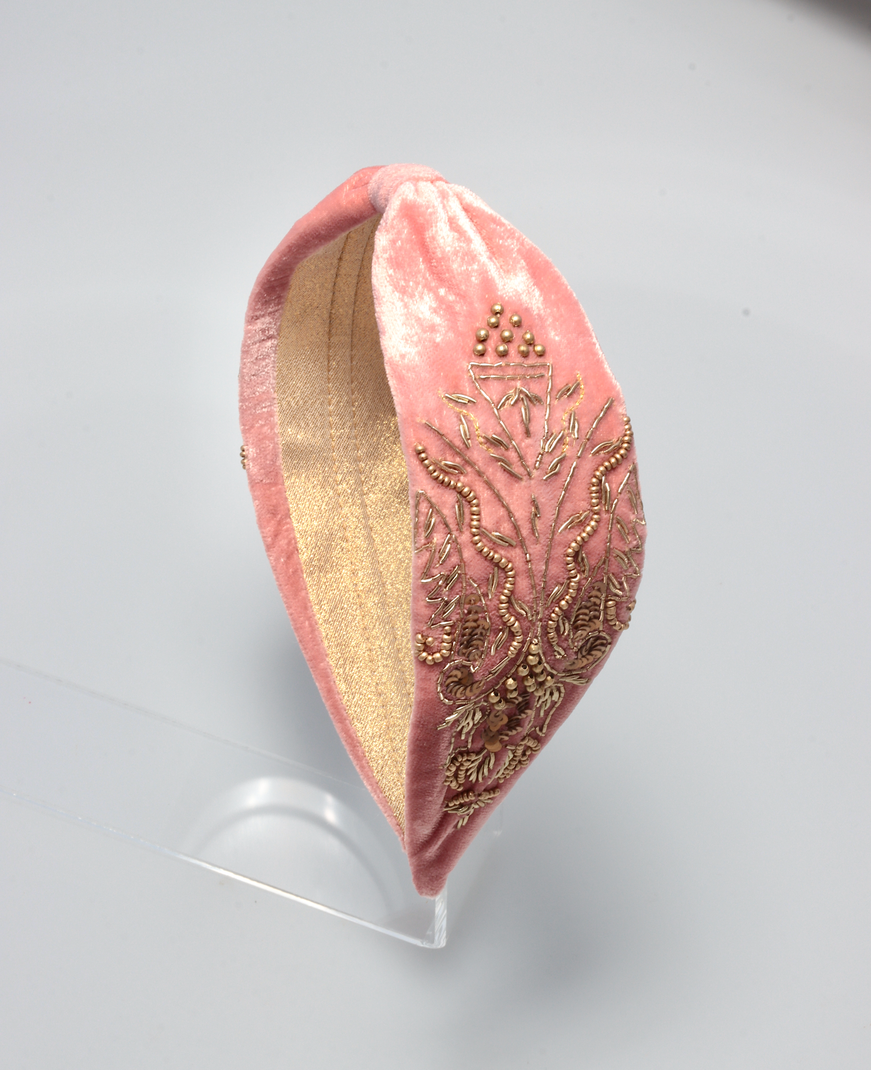 ANITA BRAND SOMON VELVET HEADBAND WITH GOLD AND BRONZE BEADS