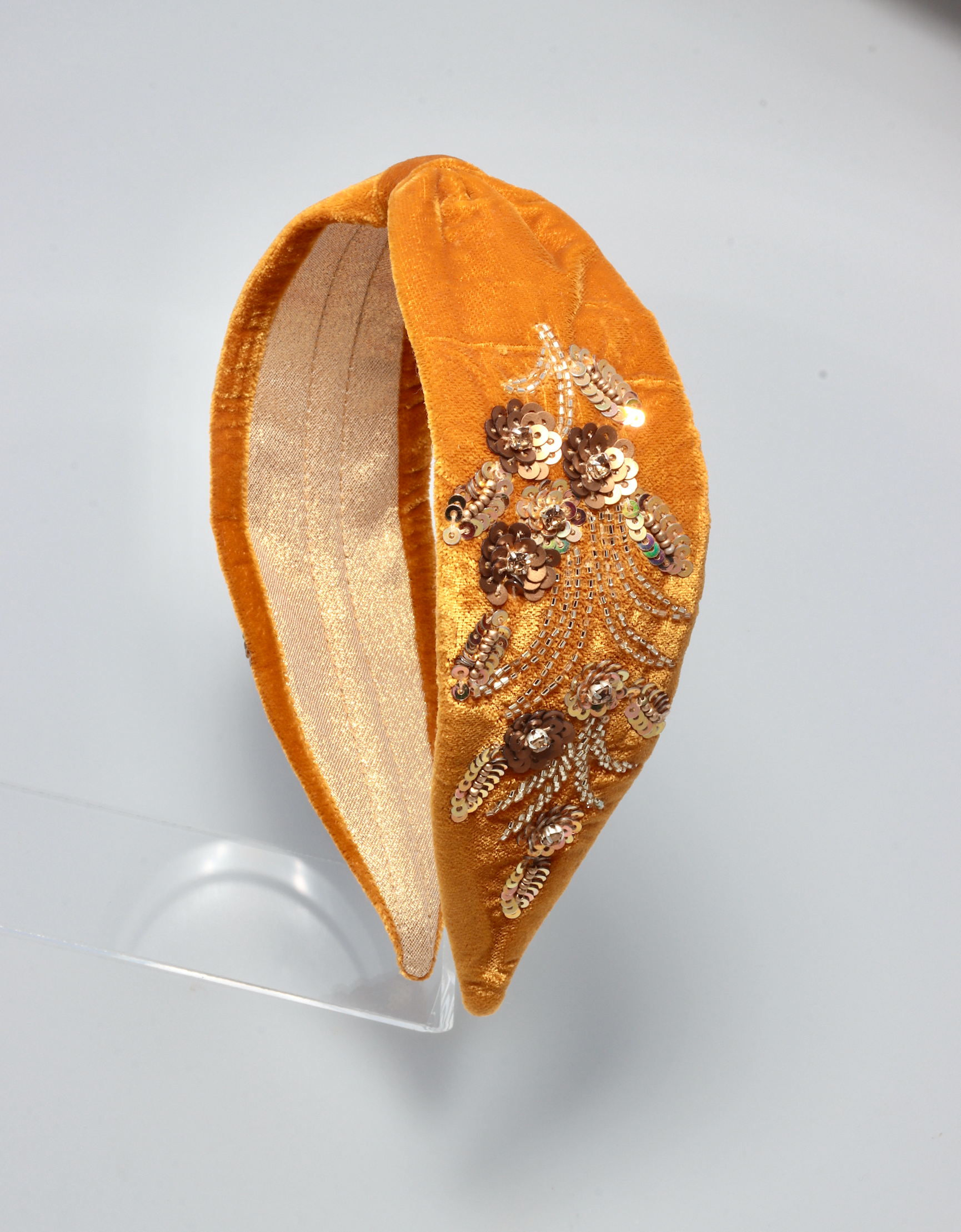 ANITA BRAND OCHRA VELVET HEADBAND WITH GOLD AND BRONZE BEADS