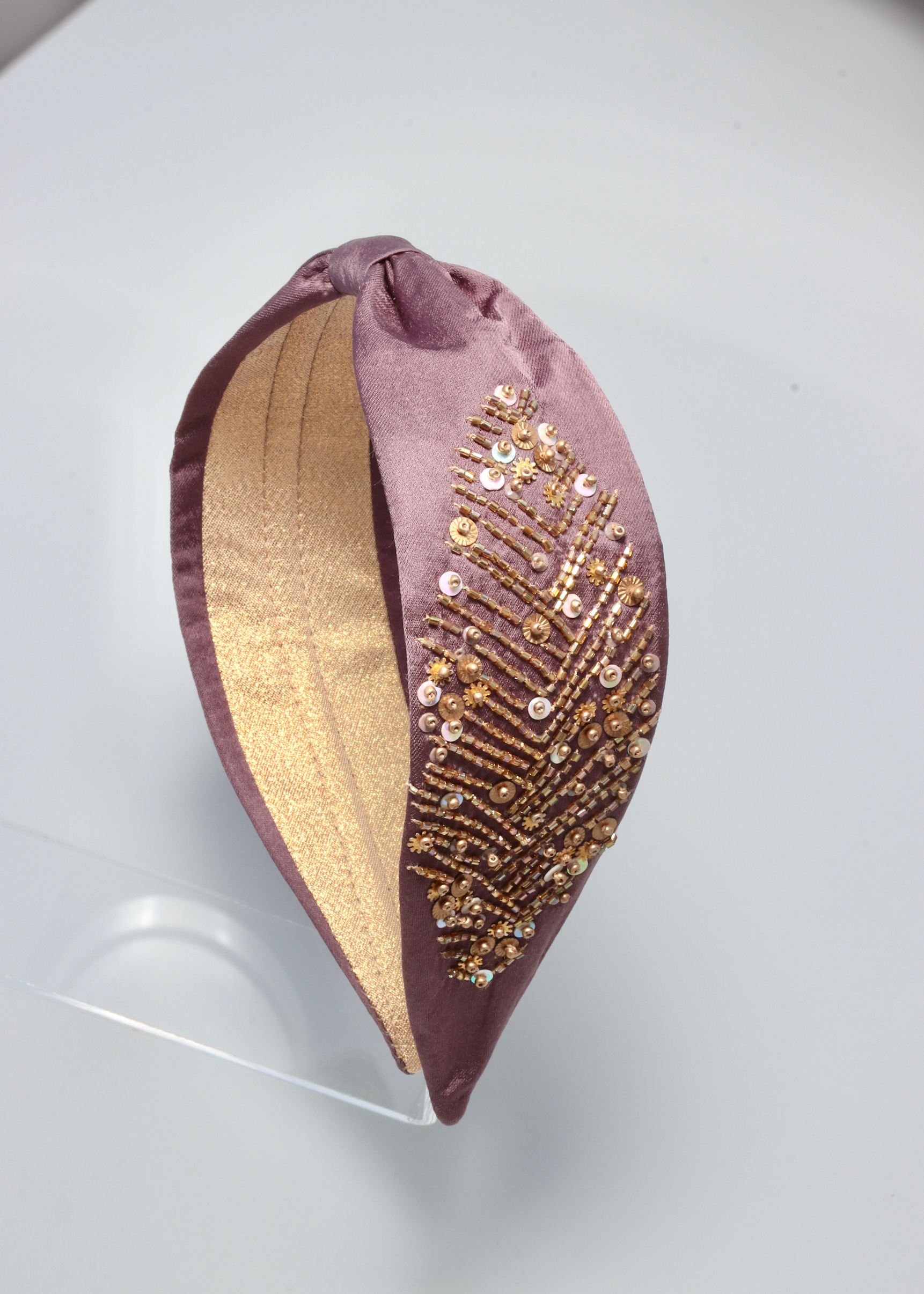 ANITA BRAND PURPLE HEADBAND WITH GOLD AND BRONZE BEADS