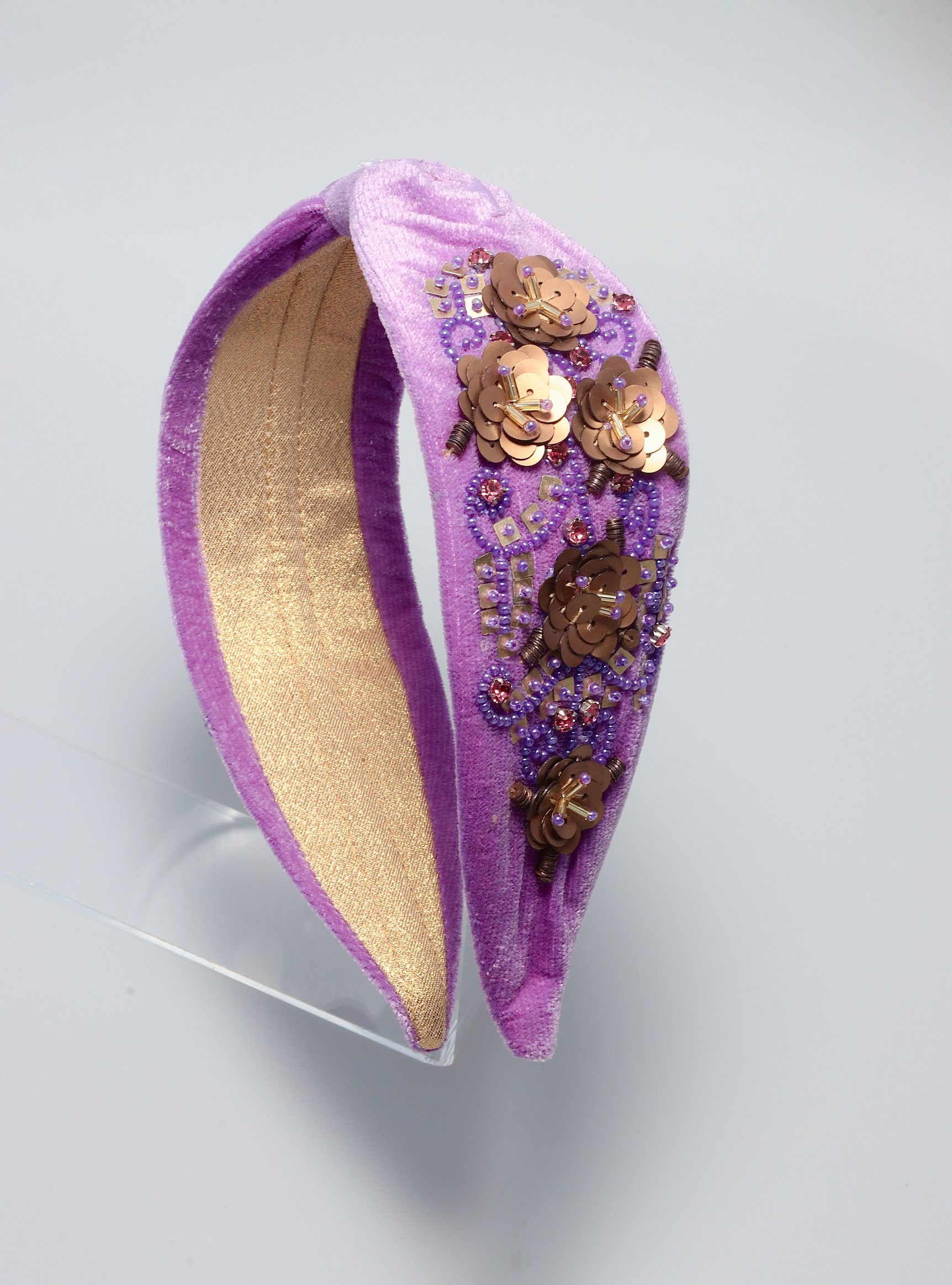 ANITA BRAND PURPLE VELVET HEADBAND WITH COLORFUL BEADS