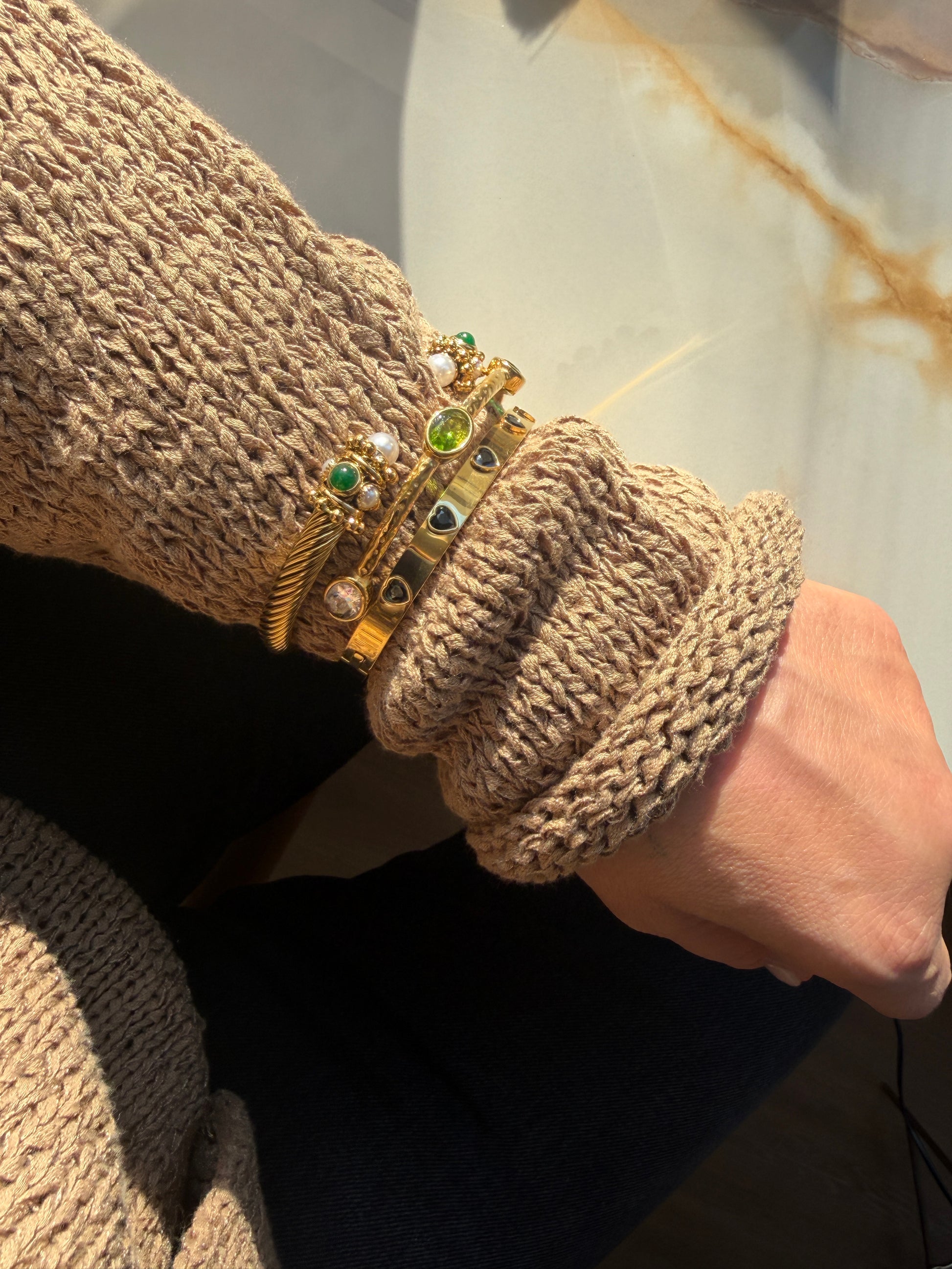 GOLD BANGLE WITH GREEN STONE