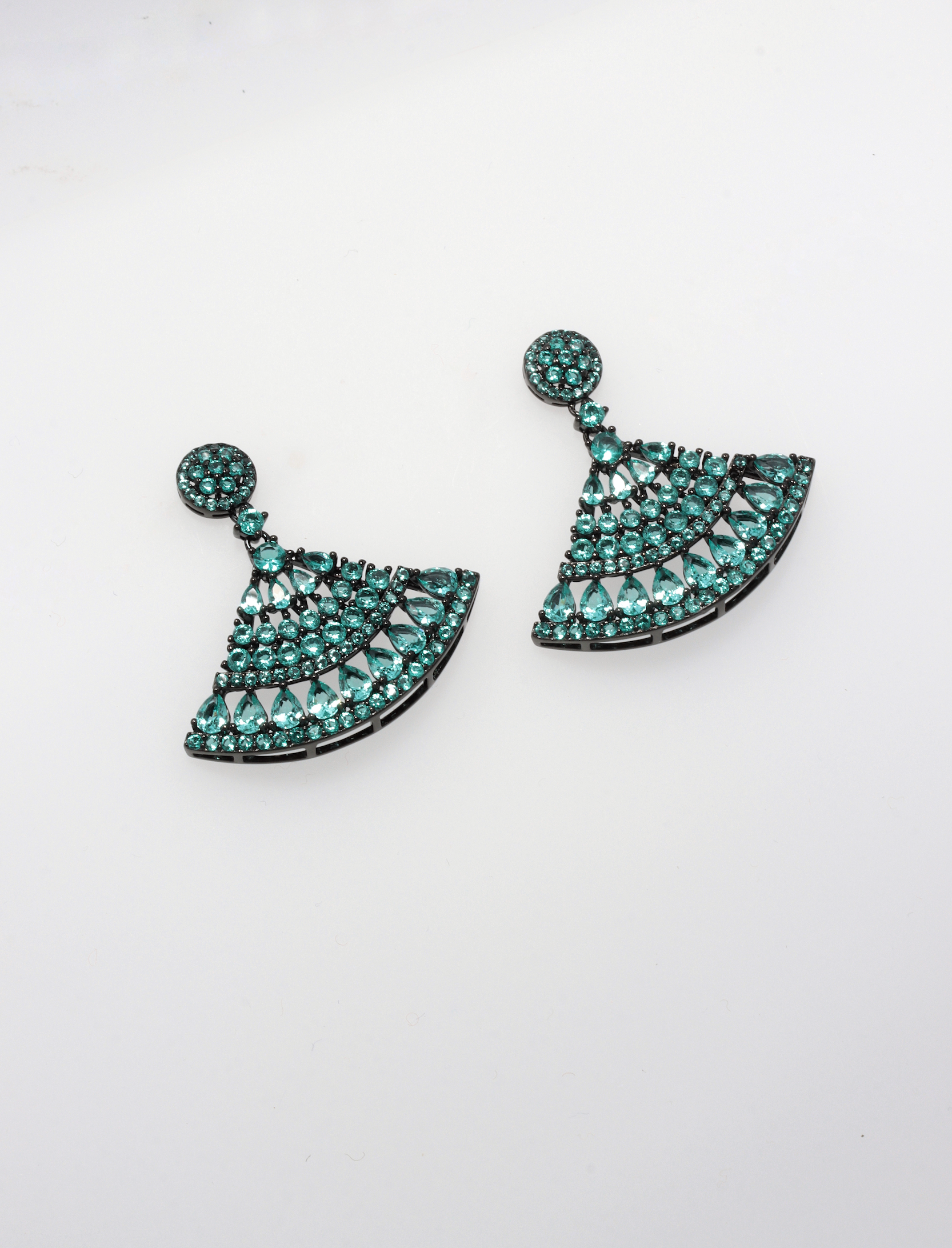 Lux Belle 925 sterling silver earrings, black plated decorated with petrol zirconia stones.