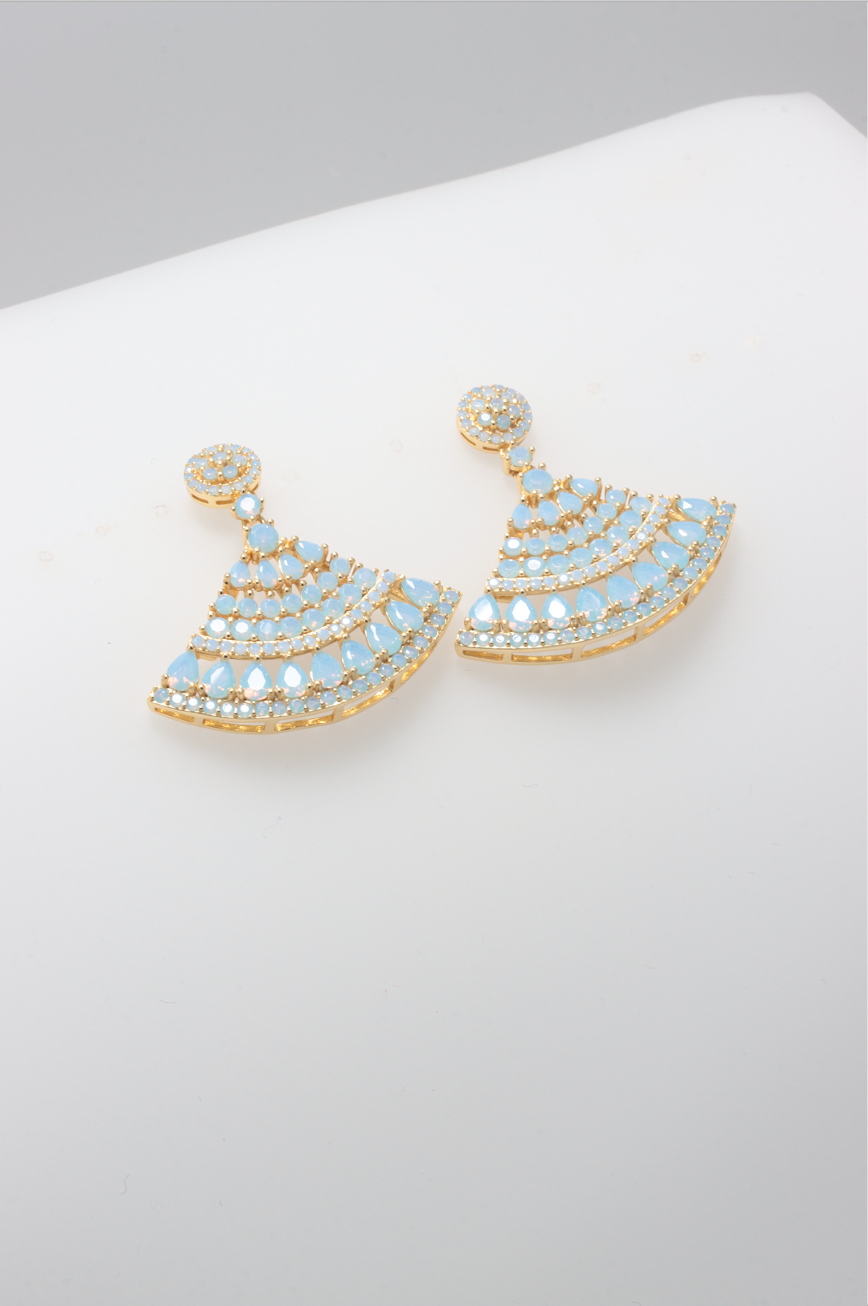 Lux Belle 925 sterling silver earrings, gold plated decorated with milky blue zirconia stones.