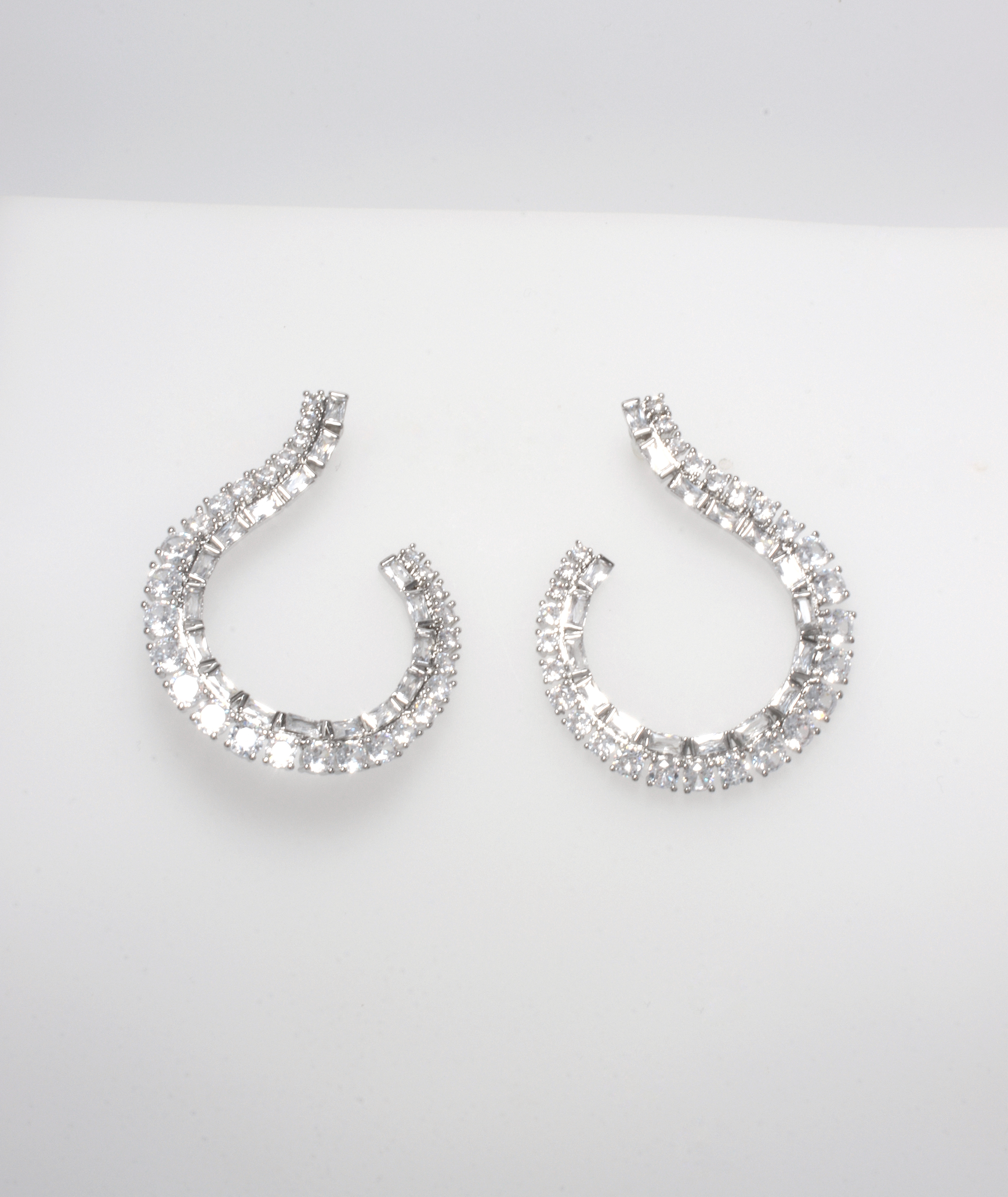 Brass earrings, platinum plated decorated with zirconia stones.