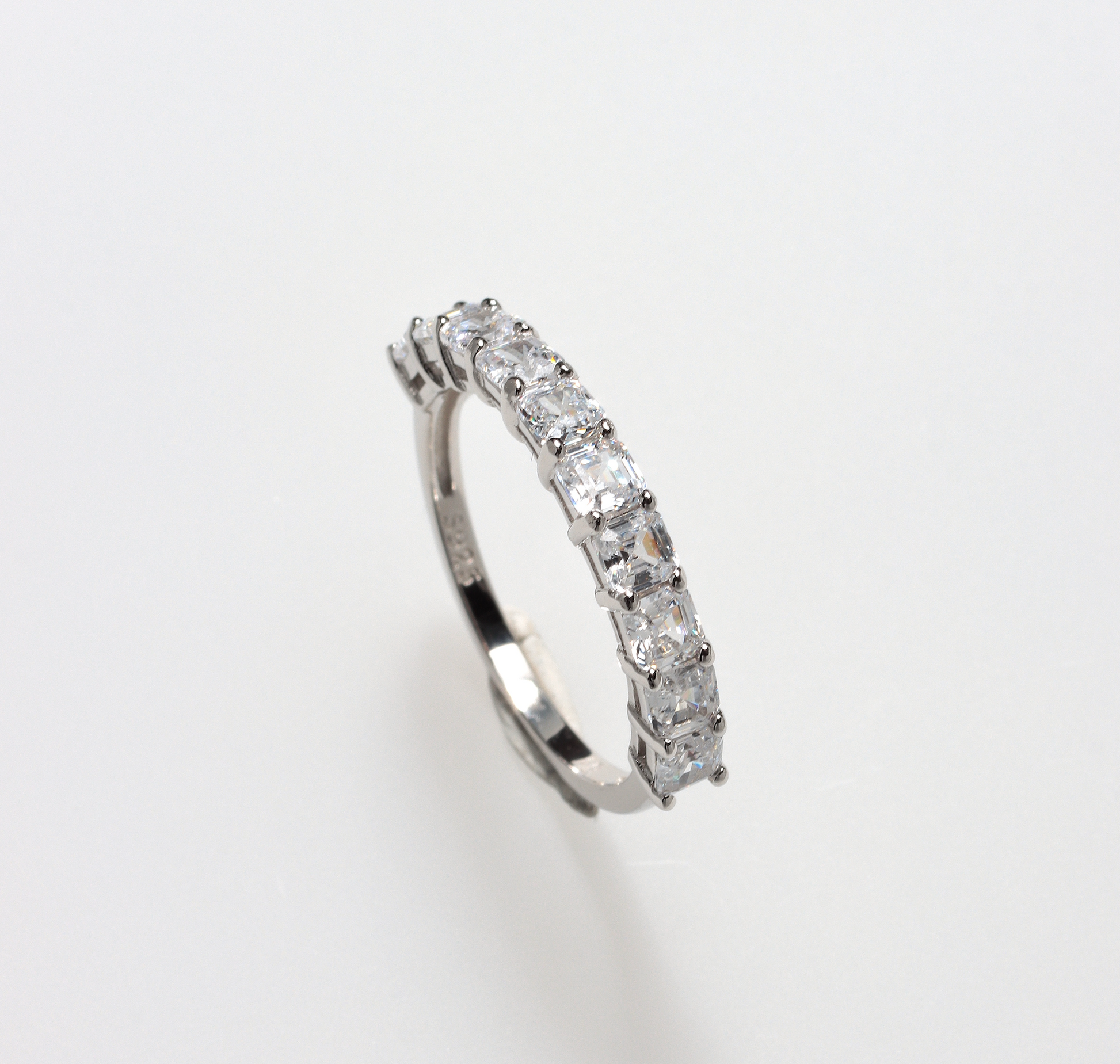 PARIS 10 SMALL ASSCHER STONES WHITE GOLD 925 SILVER RING BY ANITA BRAND