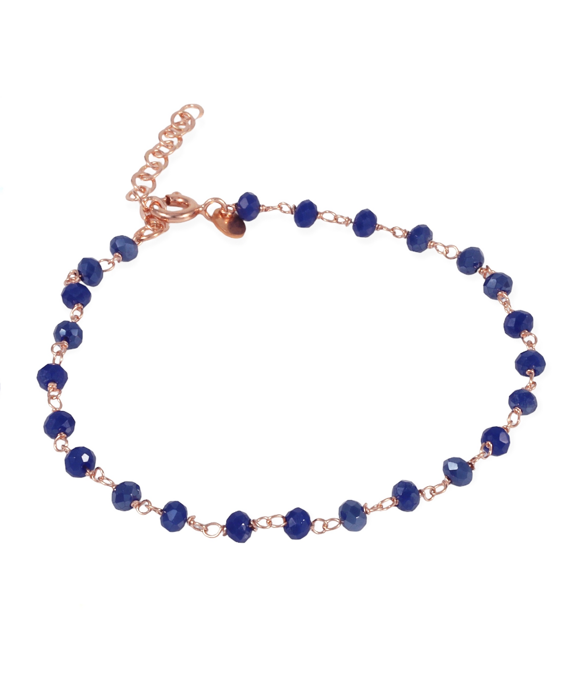 925 sterling silver, rose gold plated, handcrafted bracelet rosary decorated with shiny blue stones.