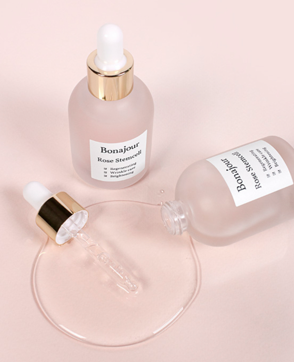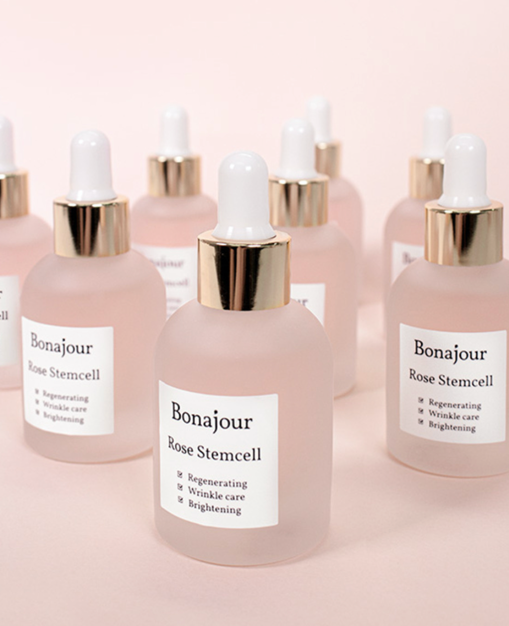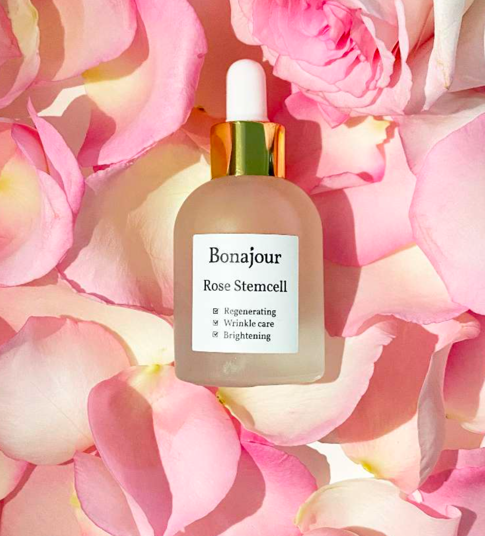 High-quality product containing a high-concentration of rose water (56%) and rose stem cells (30%).Lasting revitalization with Rosa Centifolia Flower Wa- ter as the base extract (Excellent skin-congeniality, Vitamin C, Tannin, and Citric acid)