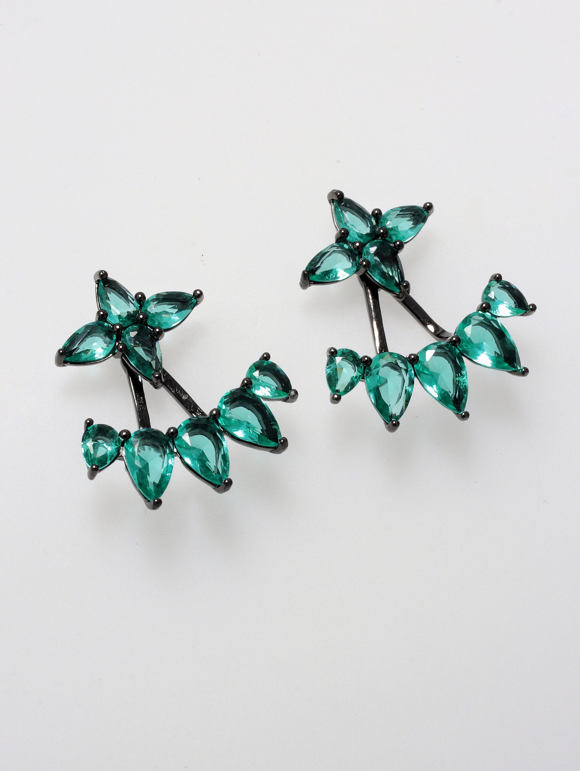 925 sterling silver earrings, black plated decorated with petrouaz petal zirconia stones.