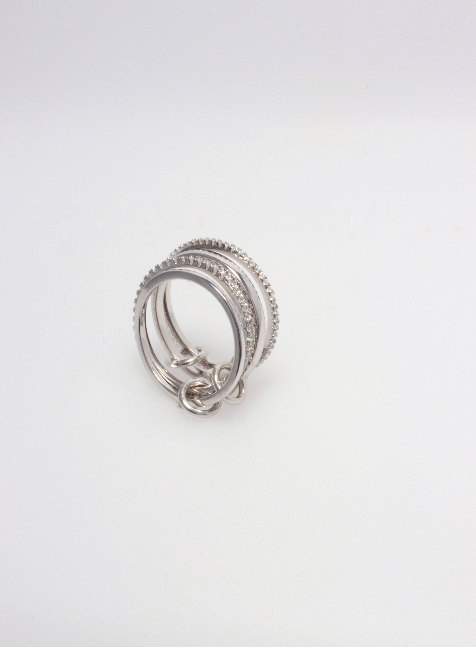 925 silver ,platinum plated, ring decorated with white zirconia stone.