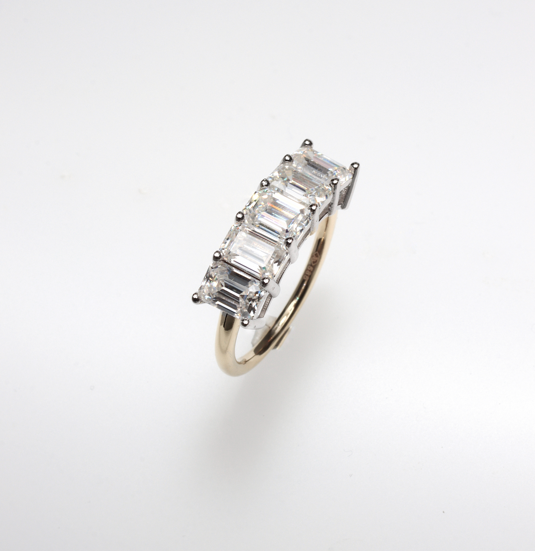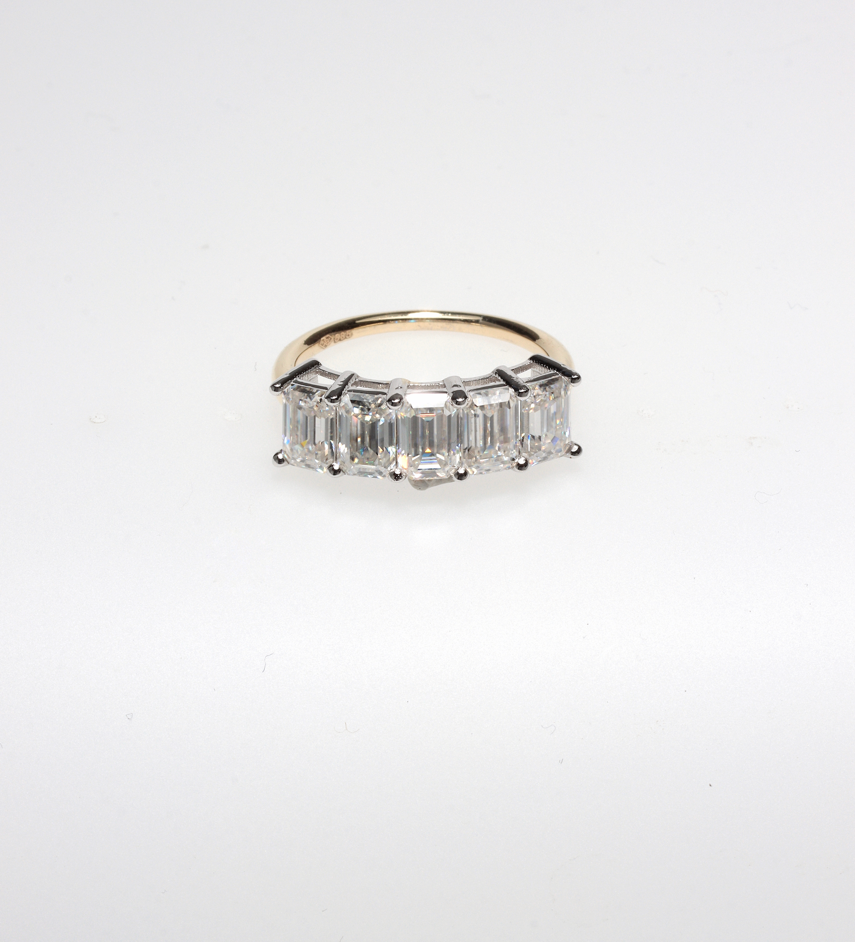 Stones: 2.9 carat-total 5 stones 4mm X6mm Emerald Cut Moissanite