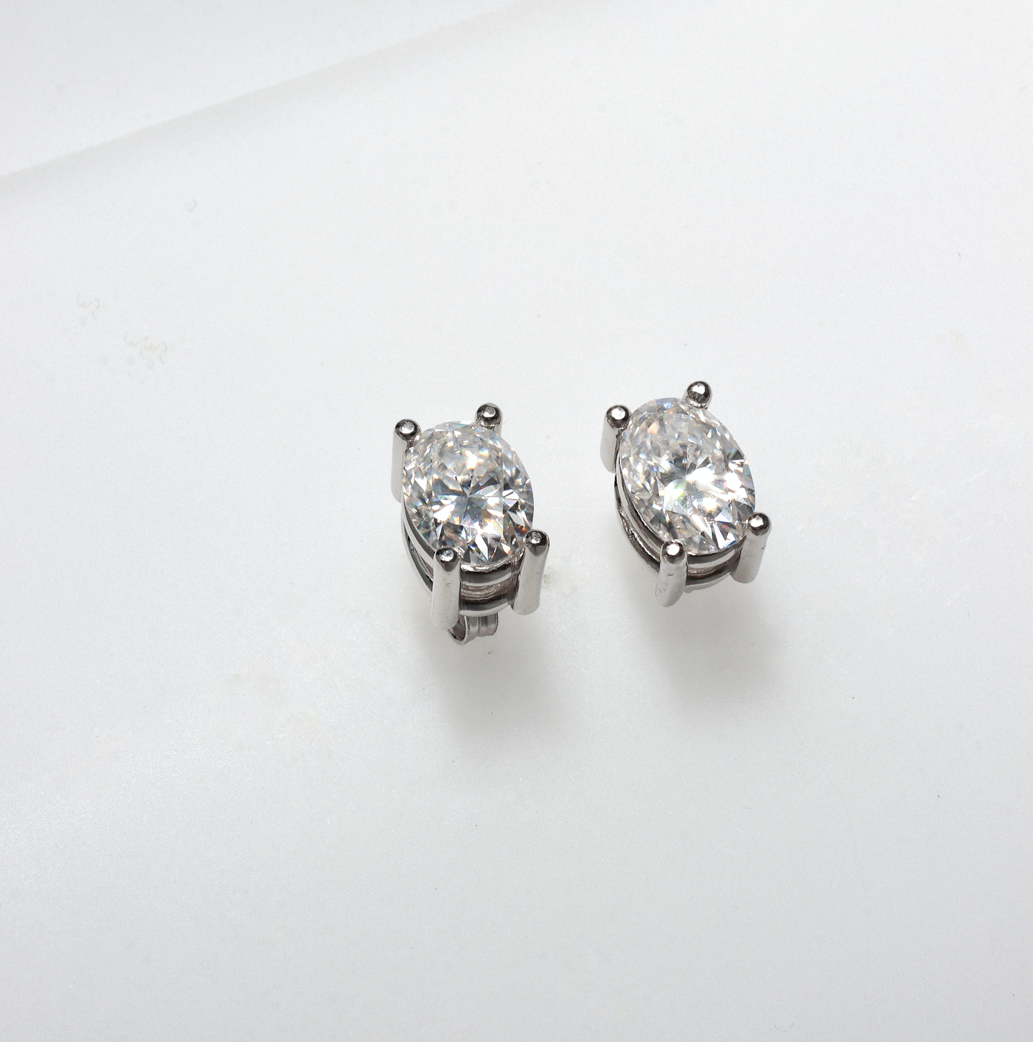Stones: 4.275carat -total 2 stones 7mmx10mm Oval Cut Moissanite