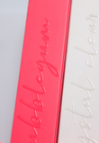 Aluminum hydroxide, Butylene glycol, CI 15850, CI 19140, CI 45410, CI 77891, Cocos nucifera oil, Diisostearyl malate, Ethylhexyl palmitate, Hydrogenated castor oil/sebacic acid copolymer, Octyldodecanol, Palmitoyl tripeptide-1, Pentaerythrityl tetraisostearate, Polybutene, Silica dimethyl silylate, Sodium hyaluronate, Sorbitan isostearate, Tocopherol, Tocopheryl acetate, Tribehenin, Triethoxycaprylylsilane.